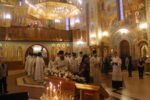 Алтарь храма с трудом вмещал всех священнослужителей и церковнослужителей на этом богослужении.