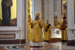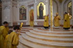 Владыке сослужили: клирик собора протоиерей Георгий Урбанович, ключарь собора протоиерей Михаил Селезнев, клирик собора иерей Давид Рожин.
