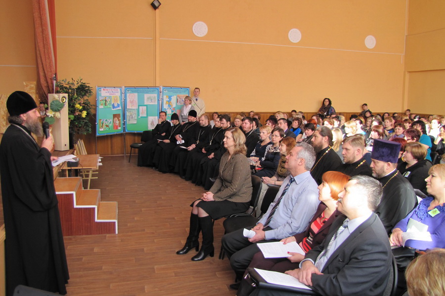С приветственным словом к присутствующим обратились епископ Балтийский Серафим и руководитель отдела Министерства образования Калининградской области Л.Ю. Барковская, отметив важность поддержания института семьи не только в школе, но и во всех сферах общественной жизни. За усердные труды в деле духовно-нравственного воспитания Архиерейской грамотой был награжден иерей Валерий Алексеев – настоятель Прихода храма в честь св. Иоанна Предтечи. Приход принимает является одним из организаторов и вдохновителей Чтений.