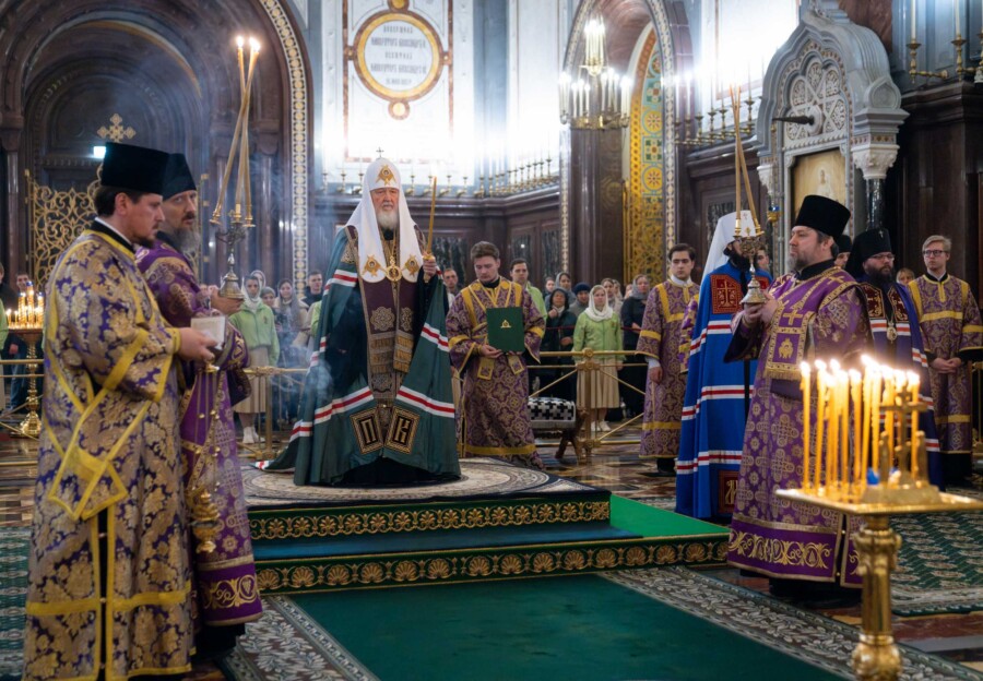 Размещено 24.03.2024 в 900 × 624 в Митрополит Серафим сослужил Святейшему Патриарху Кириллу за всенощным бдением в Храме Христа Спасителя в Москве