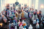 Храм, расположенный на главной площади райцентра, был переполнен, многие прихожане желали побывать на службе, совершаемой архиерейским чином, причаститься святых Христовых Таин в этот праздничный день.