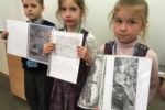 София Гусева, 2й класс: «Мы набрали на телефоне с мамой имя и фамилию моего дедушки — Степанко Федор Иванович, Герой Советского Союза — и нам открылась информация, и мы ее списывали оттуда. И я нарисовала его фотографию. Я очень удивилась, когда увидела его фотографию, потому что раньше не знала, как он выглядит. Он был настоящий герой — получил звание Героя за мужество при форсировании Днепра«.