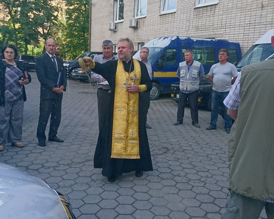 Здесь отец Марьян совершил молебен о призвании Божией помощи на благое дело с чином освящения специальных автомобилей для обслуживания населения. Также священник провел беседу с сотрудниками министерства.