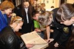 Экскурс в историю возникновения письменности провела с молодежью ведущая читального зала Н. А. Шабалтас. Наталья Анатольевна напомнила ребятам историю древнерусских рукописных книг, которые создавались на пергаменте при помощи гусиных или лебединых перьев. Самые старые книги, появившиеся на Руси, относятся к 11 веку: «Остромирово Евангелие», «Изборник», «Архангельское Евангелие». Бережно хранятся старинные рукописные книги в библиотеках Санкт-Петербурга, Москвы, Киева. У нас в библиотеке есть факсимильная копия одной из этих книг, «Остромирово Евангелие», а оригинал находится в Санкт-Петербурге в областной публичной библиотеке им. Салтыкова-Щедрина.