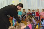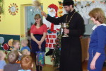 В этом году отца Димитрия пригласили на Рождественский утренник 15 января. Батюшка рассказал о празднике Рождества Христова, а в качестве наглядного материала к рассказу дети увидели презентацию, подготовленную воспитателями дошкольного учреждения. Затем ребята порадовали священника чтением праздничных стихов. Отец Димитрий, в свою очередь, окропил детей святой водой и, благословив, подарил сладкие подарки.