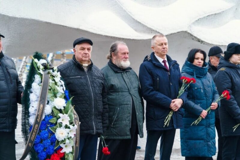 Размещено 16.02.2026 в 900 × 600 в Священник принял участие в митинге памяти на братской могиле советских воинов