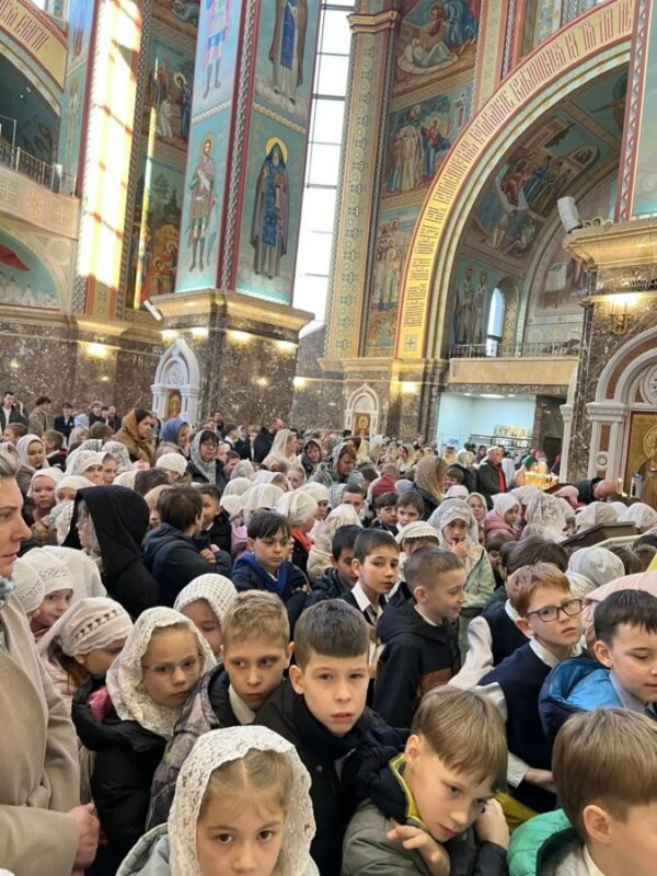 Размещено 08.04.2026 в 675 × 900 в Учащиеся Православной гимназии молились за Литургией в праздник Благовещения Богородицы