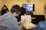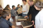 Вместе с ведущим библиотекарем читального зала Шабалтас Н.А. молодежь совершила небольшой экскурс в историю возникновения письменности, как древнерусские рукописные книги создавались на пергаменте при помощи гусиных или лебединых перьев. Самые старые книги, появившиеся на Руси, относятся к 11 веку: «Остромирово Евангелие», «Изборник», «Архангельское Евангелие». Бережно хранятся старинные рукописные книги в библиотеках Санкт-Петербурга, Москвы, Киева.