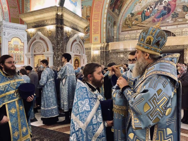 Размещено 07.04.2021 в 900 × 675 в В канун праздника Благовещения Пресвятой Богородицы архиепископ Серафим совершил Всенощное бдение