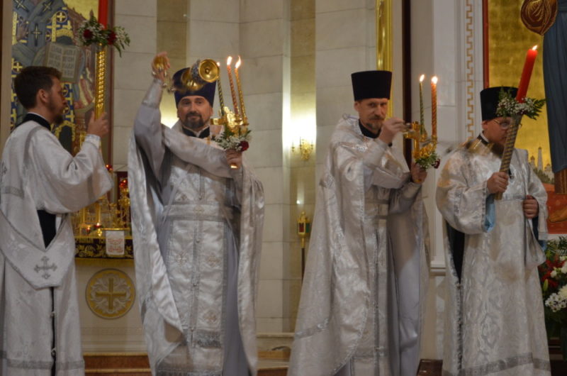 Размещено 29.04.2019 в 900 × 596 в В праздник Светлого Христова Воскресения архиепископ Серафим возглавил пасхальное богослужение в Кафедральном соборе Христа Спасителя
