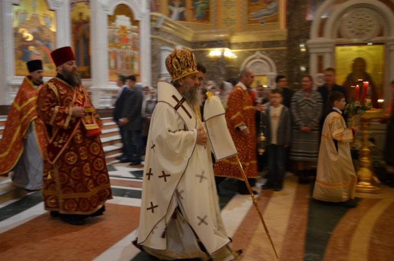 Размещено 29.04.2019 в 900 × 596 в В праздник Светлого Христова Воскресения архиепископ Серафим возглавил пасхальное богослужение в Кафедральном соборе Христа Спасителя
