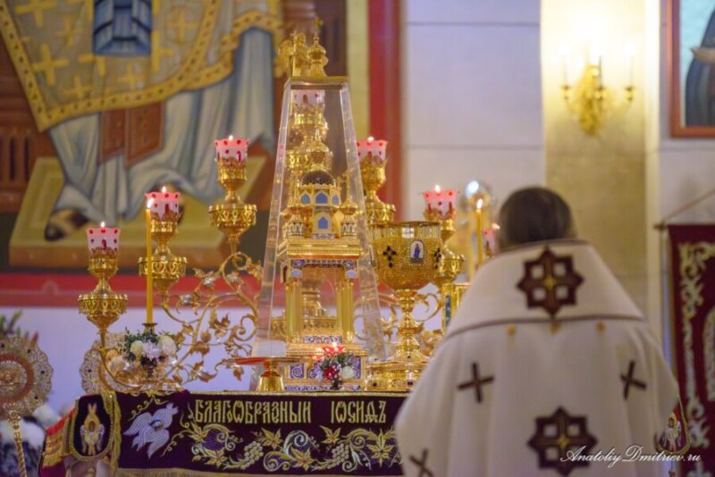 Размещено 20.04.2025 в 900 × 601 в В праздник Светлого Христова Воскресения митрополит Серафим возглавил богослужение в Кафедральном соборе Христа Спасителя