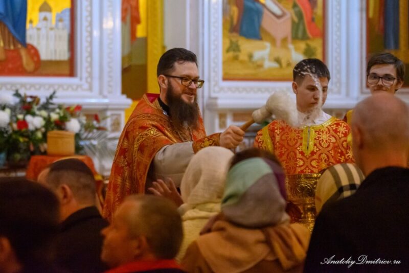 Размещено 20.04.2025 в 900 × 601 в В праздник Светлого Христова Воскресения митрополит Серафим возглавил богослужение в Кафедральном соборе Христа Спасителя