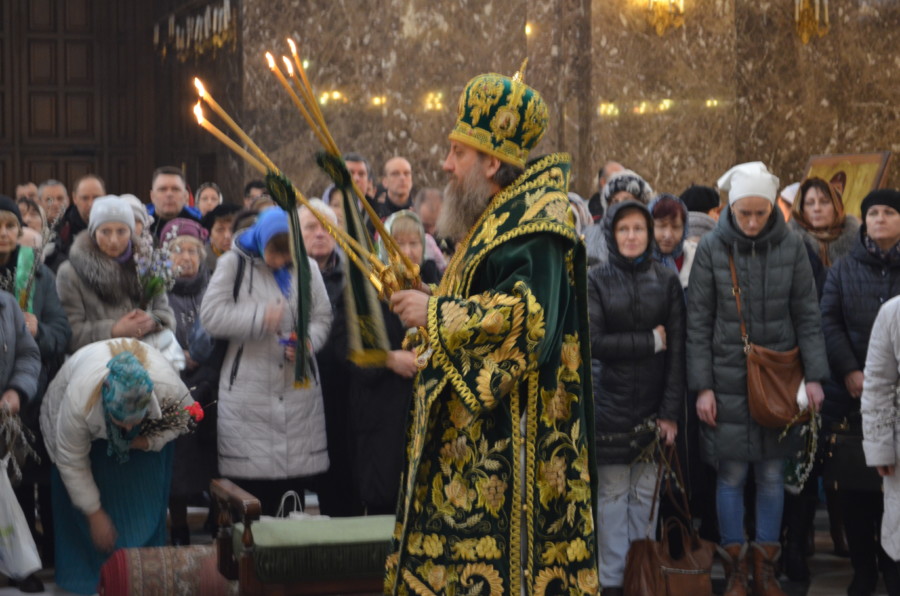 Размещено 01.04.2018 в 900 × 596 в В праздник Входа Господня в Иерусалим архиепископ Серафим совершил Литургию вместе с диаконской хиротонией в Кафедральном соборе Христа Спасителя